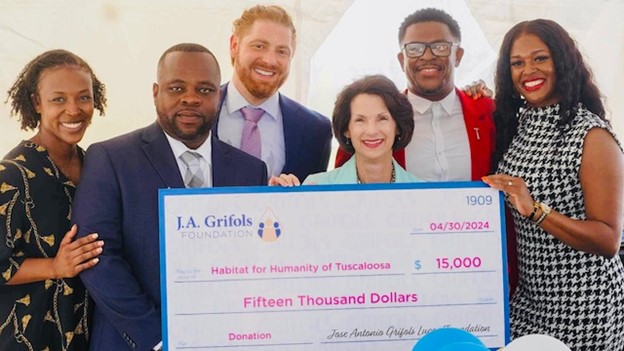 The J.A. Grifols Foundation presented Habitat for Humanity of Tuscaloosa with a $15,000 grant during a check presentation event hosted by Talecris Plasma Donation Center, part of the Grifols Network of Plasma Donation Centers in Tuscaloosa.