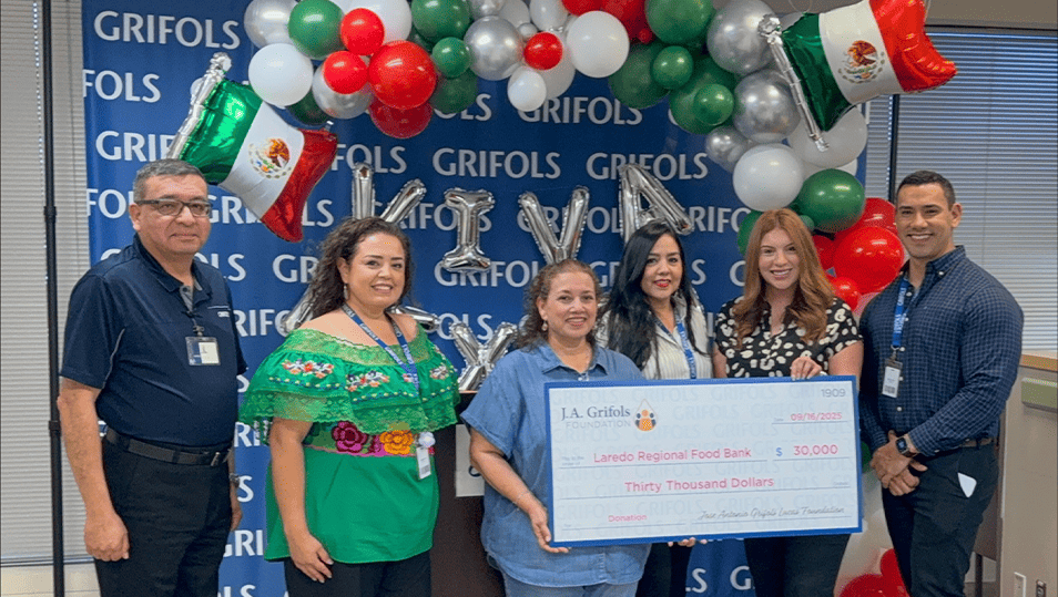 During a Mexico Independence Day celebration, the J.A. Grifols Foundation presented a $30,000 check to the Laredo Regional Food Bank. This is the second contribution that the Foundation provided to the Foodbank. These donations strengthens the food bank’s ability to serve vulnerable families in the region.
